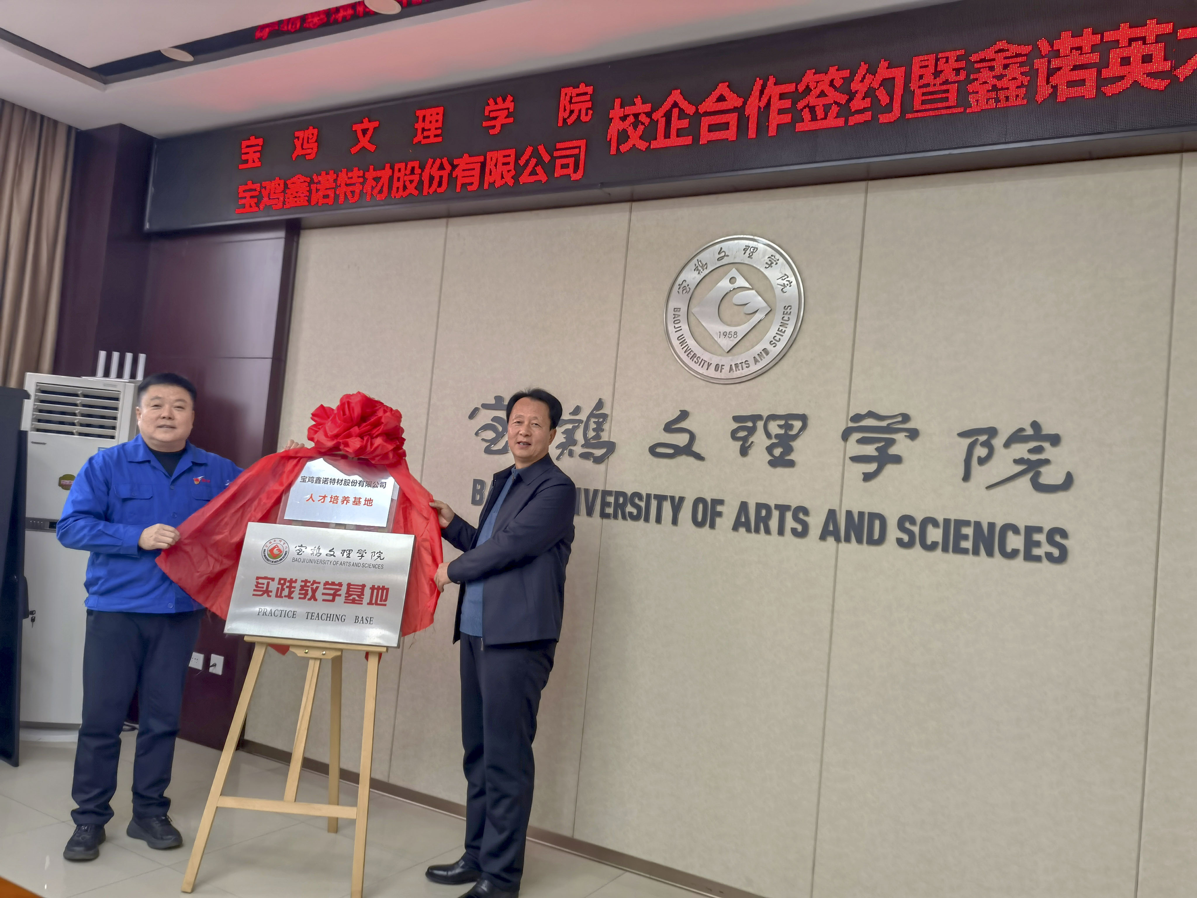 寶雞文理學院教學實踐基地、鑫諾特材人才培養基地揭牌