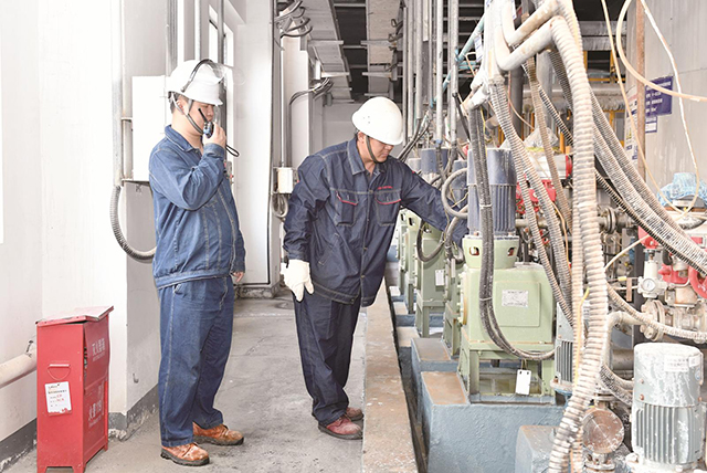 11月24日,成物智服化檢分公司鈦業二項目部職工沈興順與劉文臣(右)正在檢查設備。今年以來,該分公司通過強化設備數據、狀態監測,提升設備可開動率,增強預防性維護工作的整體成效;嚴格做好定修周期管理,提高維護工作的規范性與針對性,確保了檢修質量客戶滿意度的顯著提高。